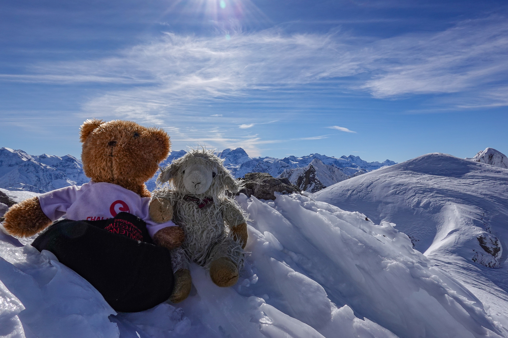 Im Schatten geht es immer bergauf und der Wind macht die Temperaturen nicht unbedingt erträglicher. Da muss ich selbst im Aufstieg noch eine Fellstufe hochschalten damit ich nicht friere. Nach gut vier Stunden sind Felix und ich dann aber doch oben am Gipfel. Obwohl, das ist gar nicht der Gipfel denn der liegt ein bisschen südwestlich und ist nicht unbedingt Skitourentauglich. Weil es eh keine Gipfel ist, machen wir auch keine lange Gipfelrast. Der Wind lädt aber auch nicht zum längeren Verweilen ein.