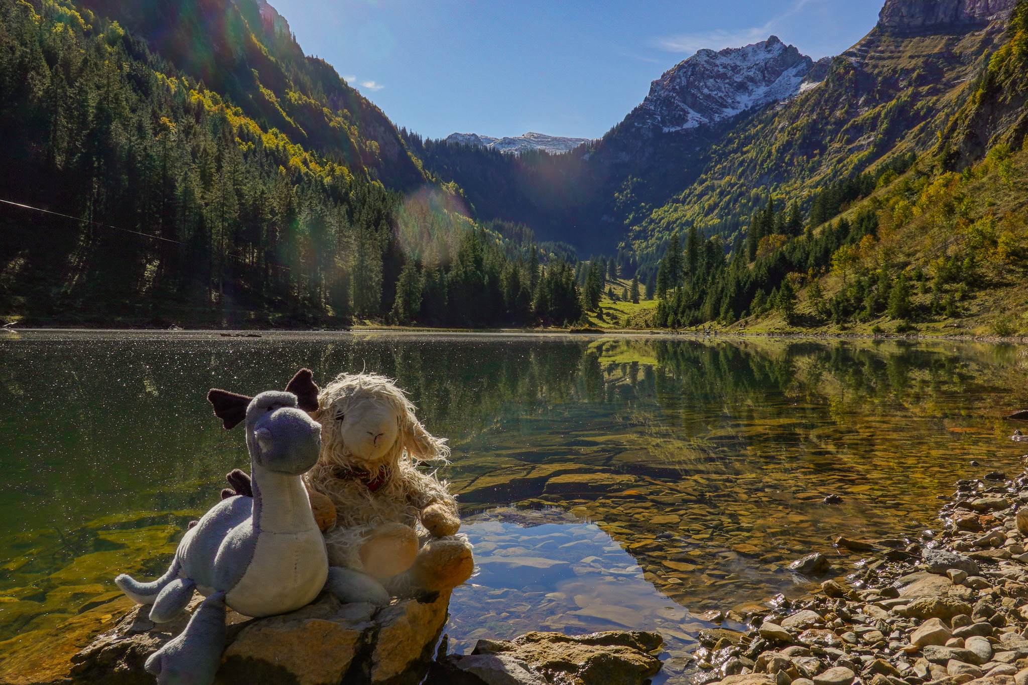 Auch dieses Jahr haben wir einen goldenen Oktober mit viel Sonne und wunderschönem Wetter in den Bergen. Für dieses Wochenende haben wir uns aber ein Ziel in der Nähe von Zürich ausgesucht. Torri wollte noch eine Runde baden gehen und der Talalpsee im Kanton Glarus hat gerade die richtige Temperatur, vielleicht sogar einen Tick kälter als Loch Torridon. Zum Glück kann man den Talalpsee kombinieren mit schönen MTB-Trails am Ziger-Highway und einem Abschluss im Café Müller. Es ist also für alles gesorgt, auch für Überraschungen.