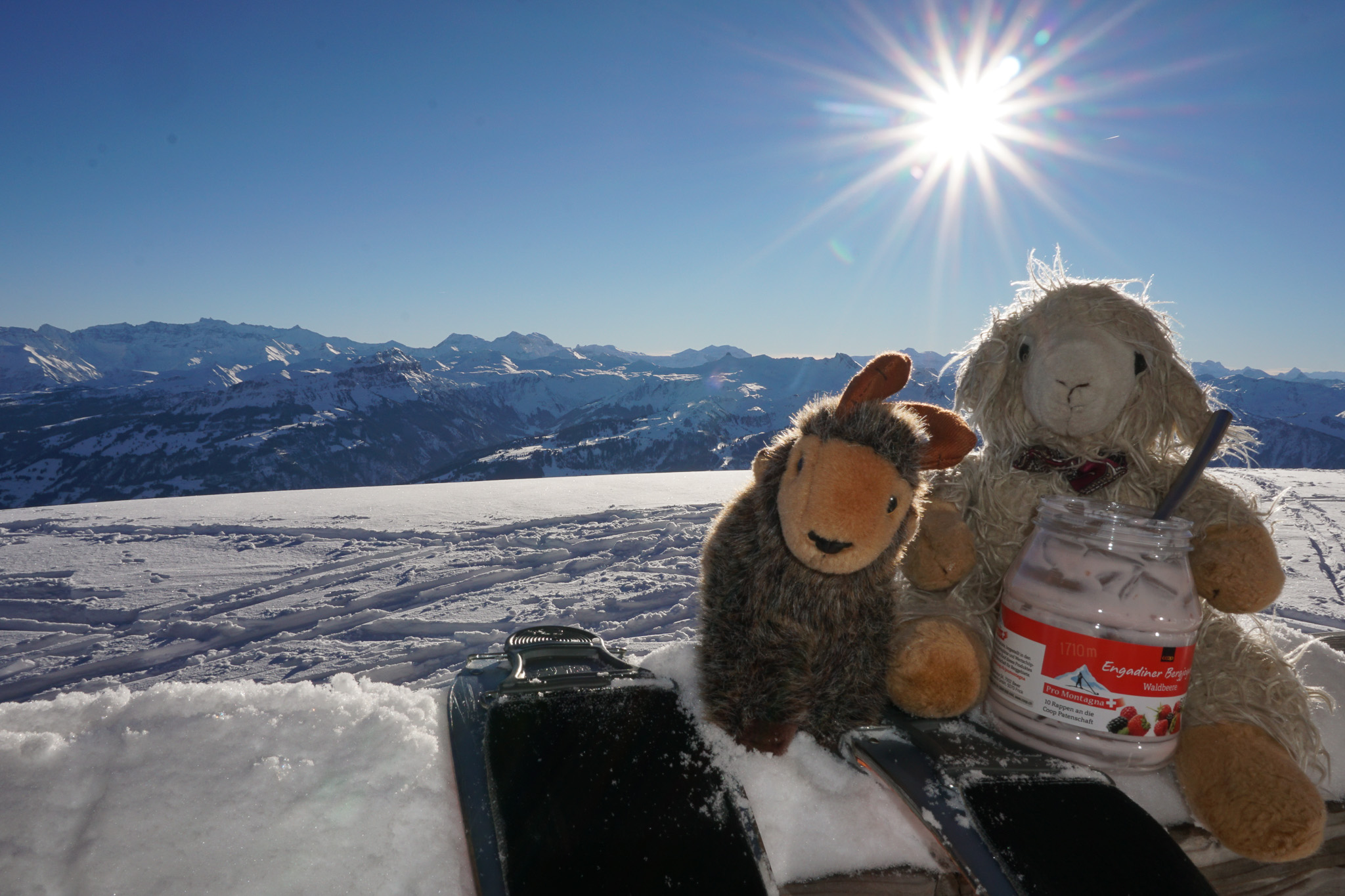 Hat sich gelohnt den Anstieg etwas schneller unter die Pfoten und Felle zu nehmen. Auch wenn Knuth am Auto unten ziemlich gejammert hat - soll er mal etwas mehr trainieren, jetzt wo sein Geweihbruch (oder was Subluxation Cornua auch immer heisst) operativ repariert wurde.
