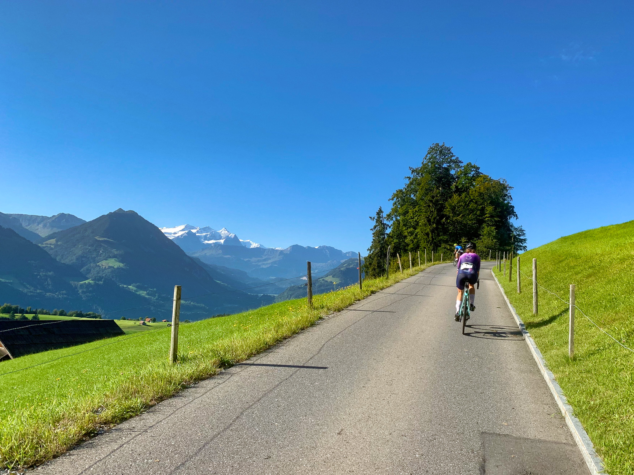 Zuerst geht es gleich mal zum Bürgenstock rauf wo schon viele Berühmtheiten genächtigt haben. Leider haben sie vergessen den Wendepunkt zu markieren und mein Umfeld und ich fahrern etwas zu weit bevor es wieder am Start vorbei zum Glaubenberg geht. Auch hier eine schöne Strasse mit super Aussicht. Eigentlich soll es aus Virenschutzgründen auch keine Trinkflaschen zum Tauschen geben und man soll seine eigene Verpflegung auf die Radstrecke mitnehmen. Dort ist aber alles perfekt ausgerüstet und ich hätte eigentlich viel weniger Gewicht mitschleppen müssen. Das gilt besonders für den letzten Anstieg hoch zum Melchsee, der schon recht steil ist. Insgesamt macht man auf den noch nicht mal 90km fast 3500Hm - eine stolze Leistung so viel Höhenmeter bei der kurzen Strecke unterzubringen.
